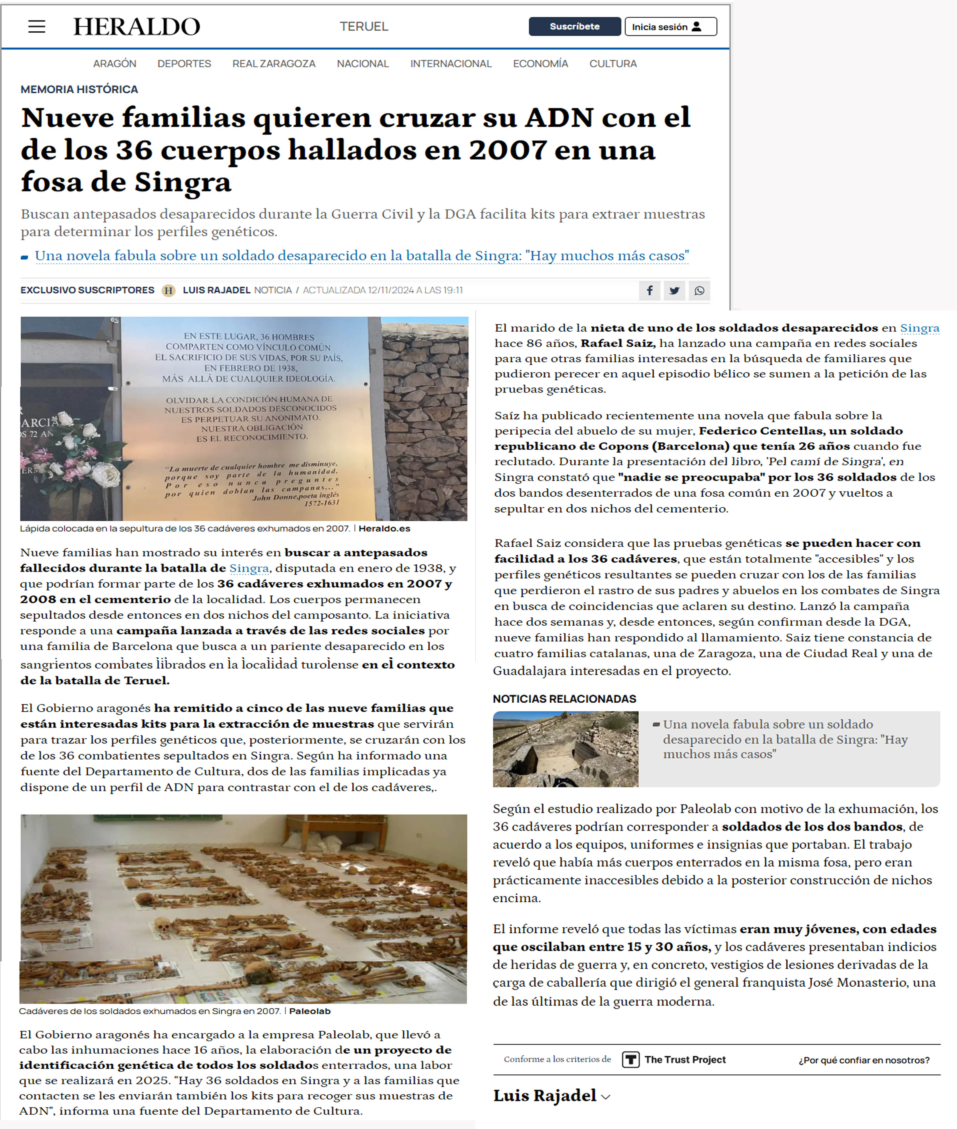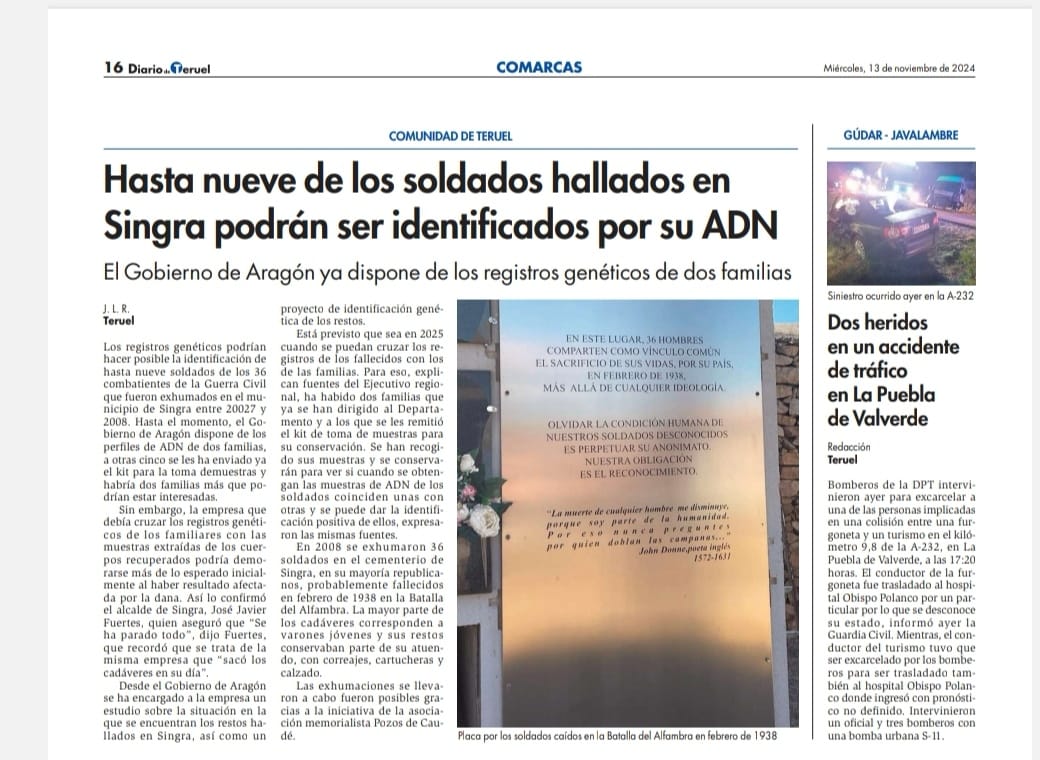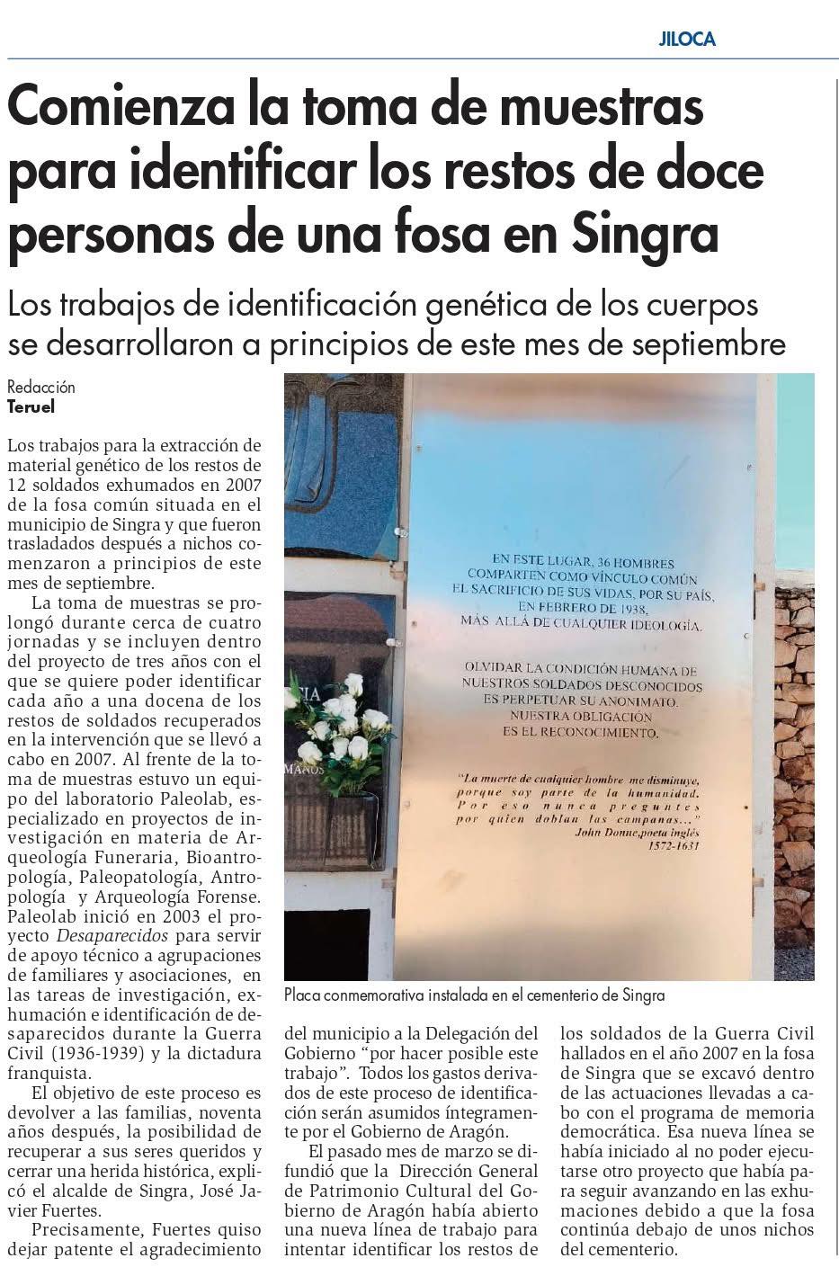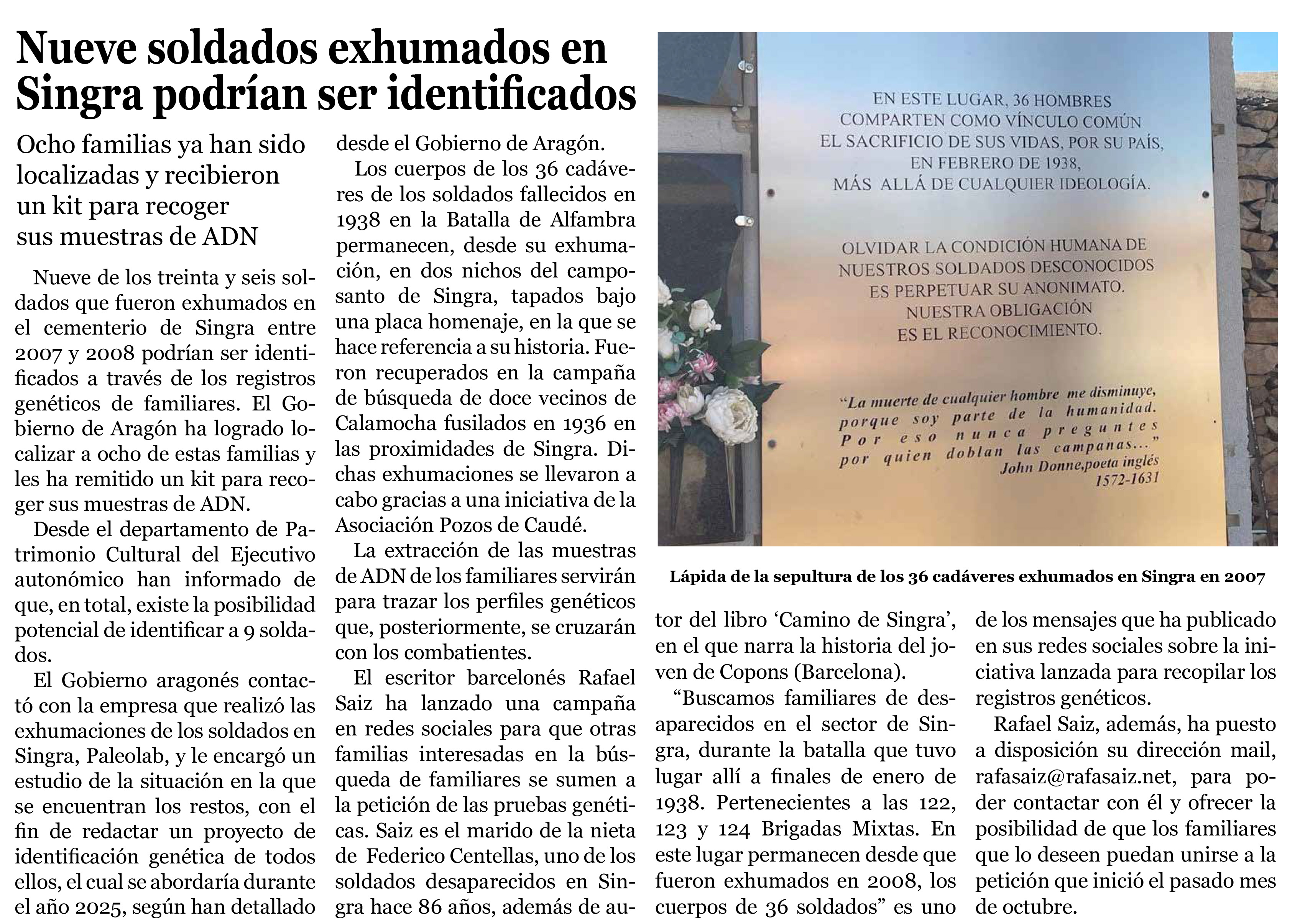 -Primeras noticias sobre las pruebas de ADN en el cementerio de Singra.