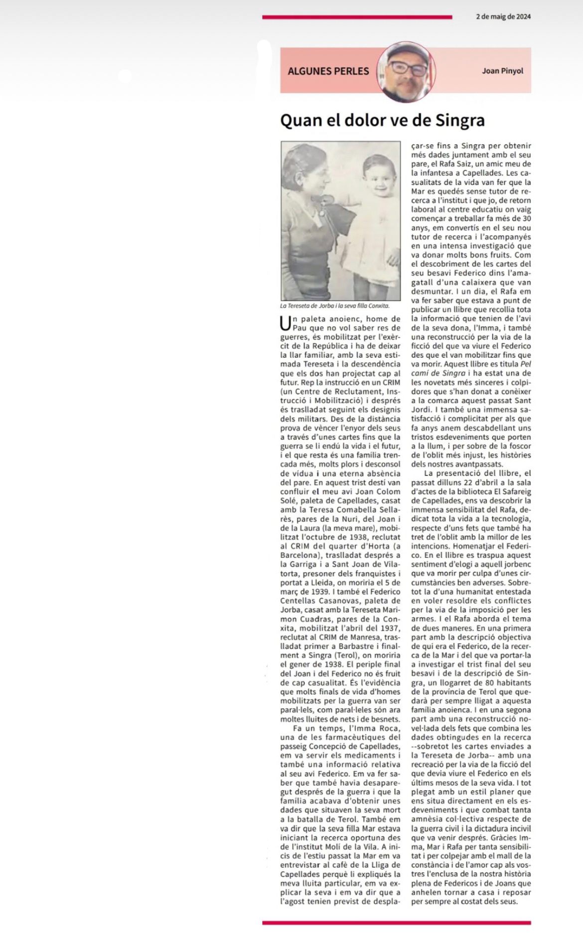 Me llamo Rafa Saiz, y soy de Capellades. Aficionado a la historia,